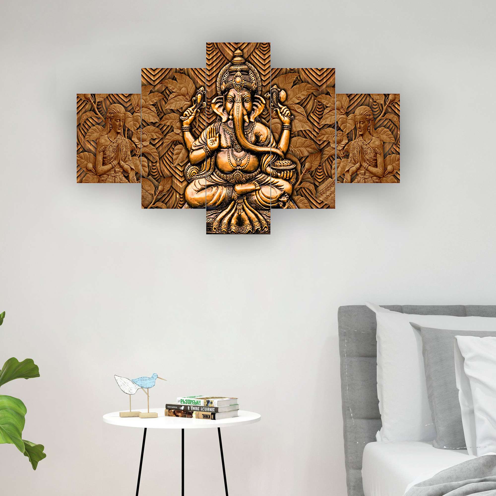 Ganesh Set of Five 3D Framed Paintings for Wall Decoration – Ideal for Home, Living Room, and Bedroom (125 x 60 CM)