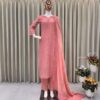 Women’s Chinon Silk Embroidery Straight Pakistani Salwar Suit and Dupatta
